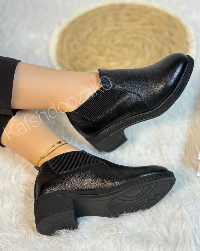 ترکیبی از ظرافت و دوام در یک جفت کفش چرم زنانه. جنس روی چرم، زیره پیو همراه کفی طبی داخل کفش مناسب استایل رسمی مجلسی و روزمره.